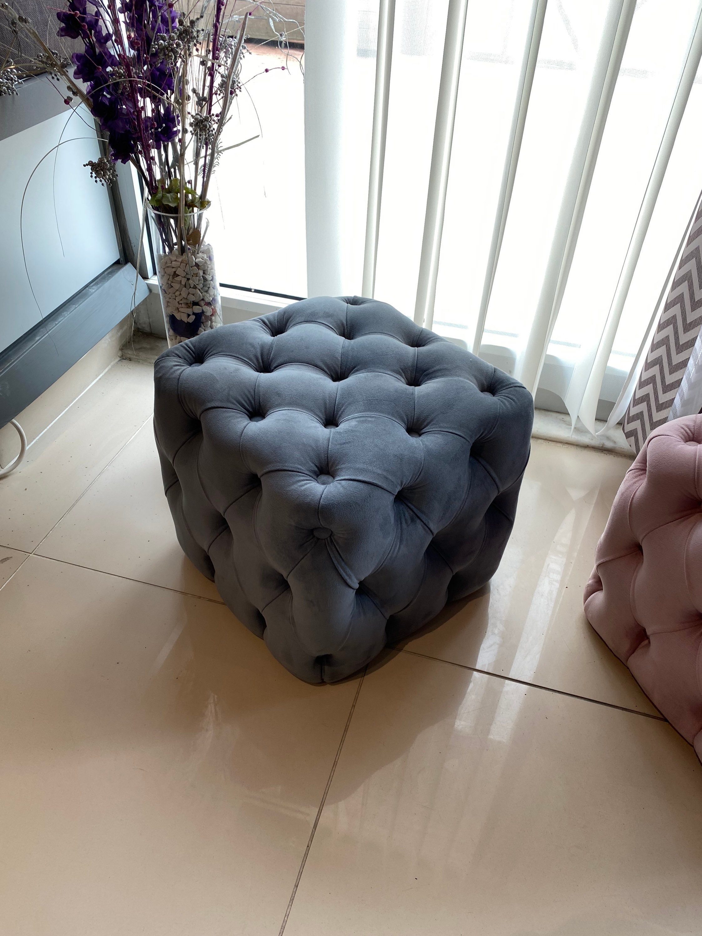 Pouf - Pouf Ottoman - Pouf Stuffed - Pouffe - Pouffe Ottoman - Pouffe Stuffed - Quilted - Pouffe Quilted - Pouffe Velvet - Vegan Leather