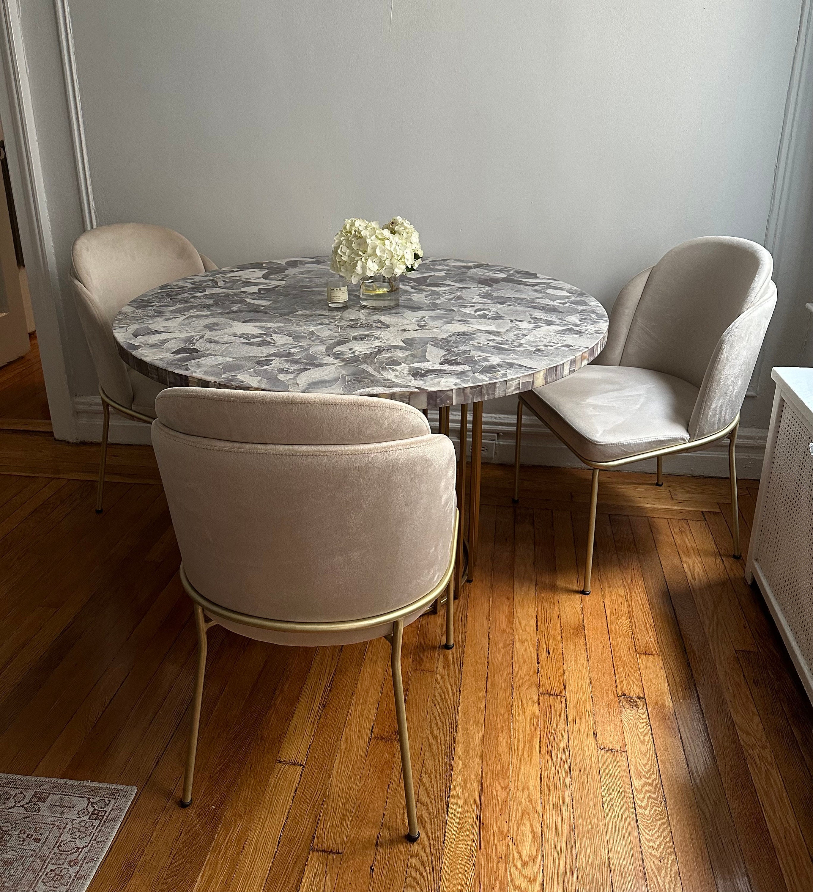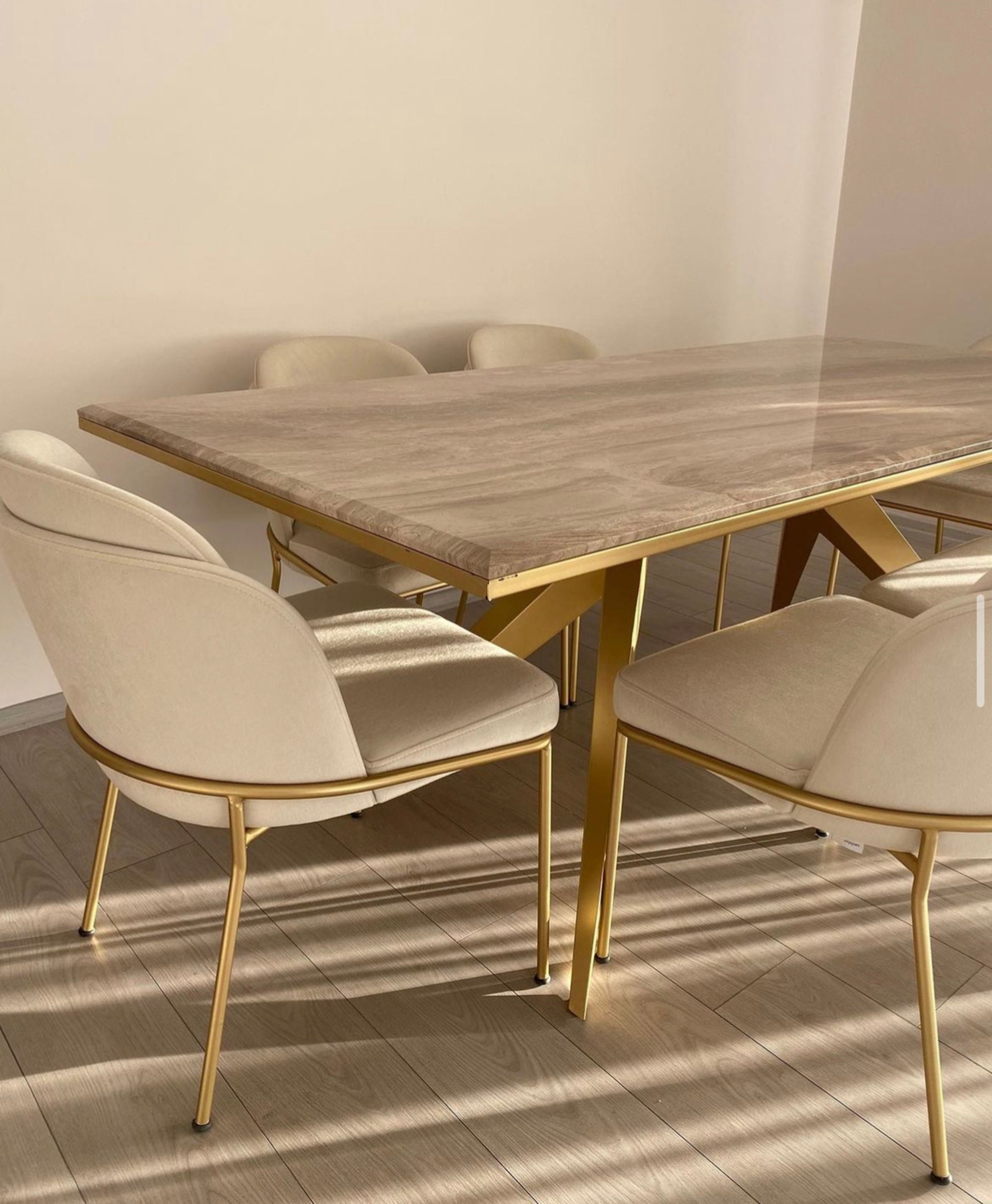 We bought four of the velvet and brass dining chairs and love them! There was some confusion with some of the pieces shipping separately, but Ali was very helpful and responsive. The chairs are a perfect fit for what we wanted - beautiful, comfortable and spacious. I’m so happy we bought them!
