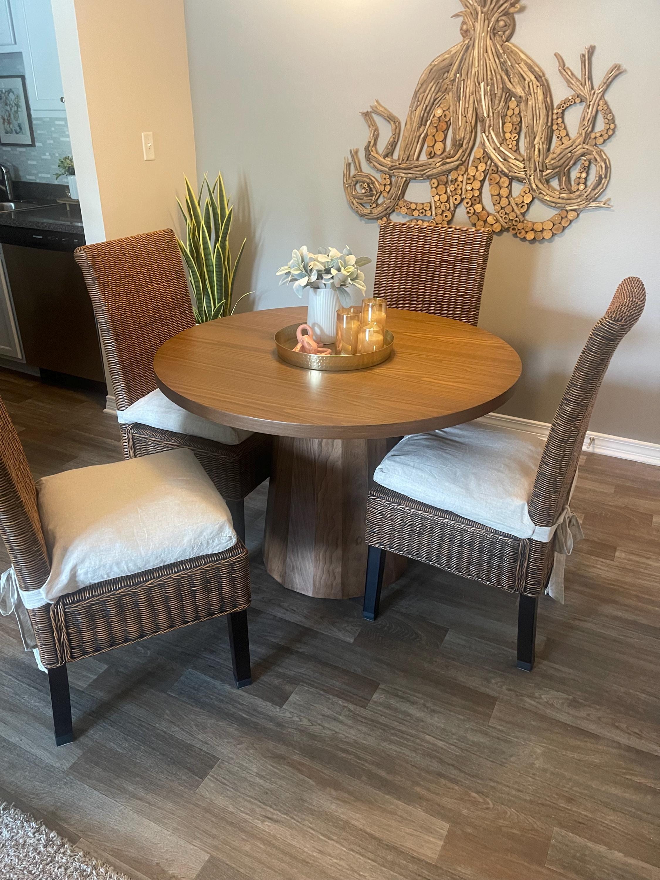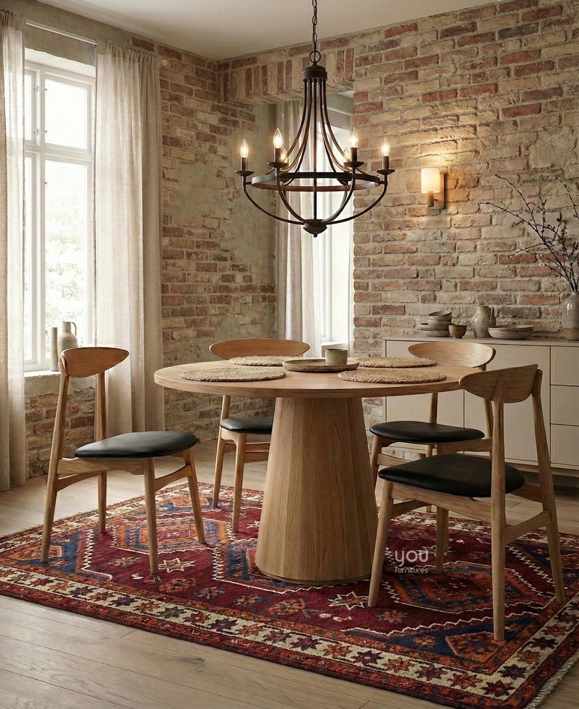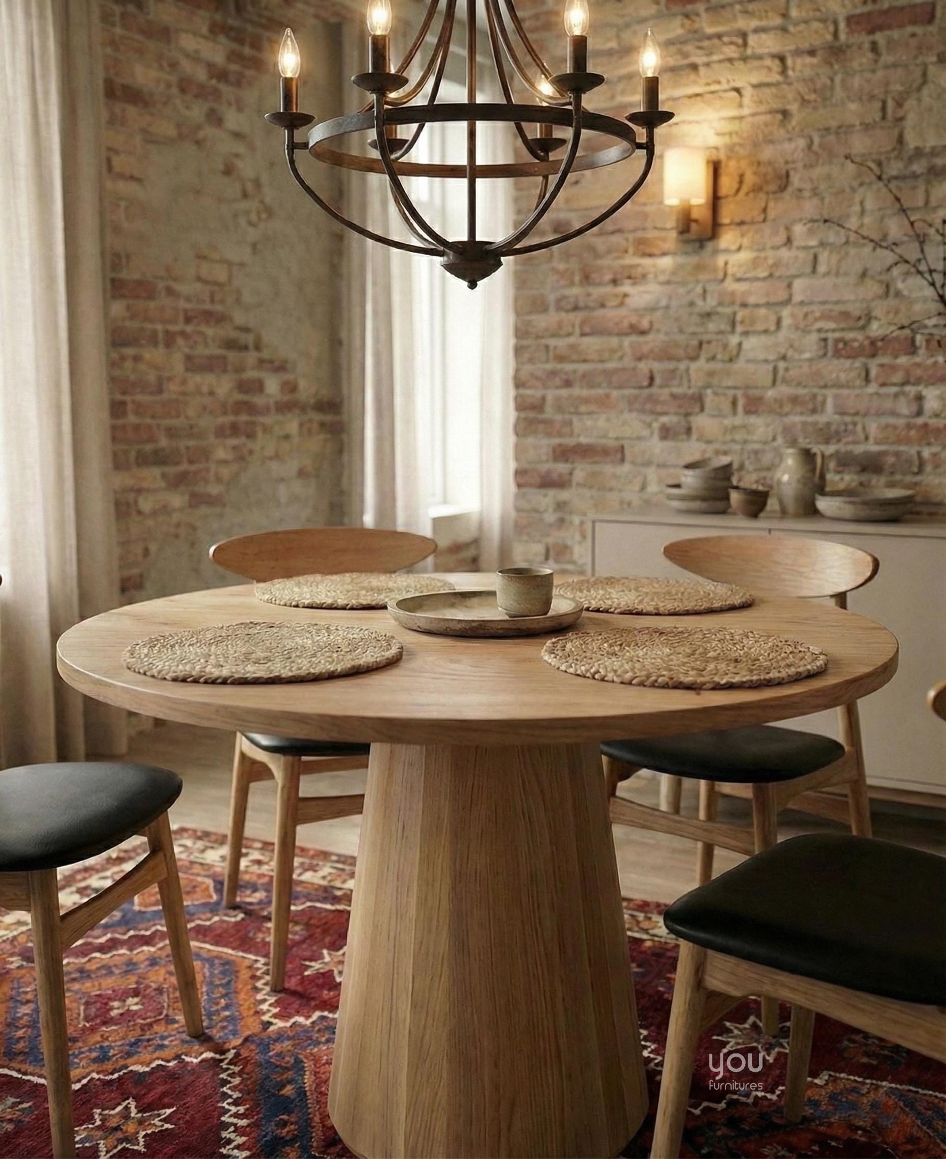 Bring warmth and timeless design to your dining area with our handcrafted round dining table, made from solid hornbeam wood. Whether you're furnishing a cozy breakfast nook or a full dining room, this table is available in four sizes to suit any space.