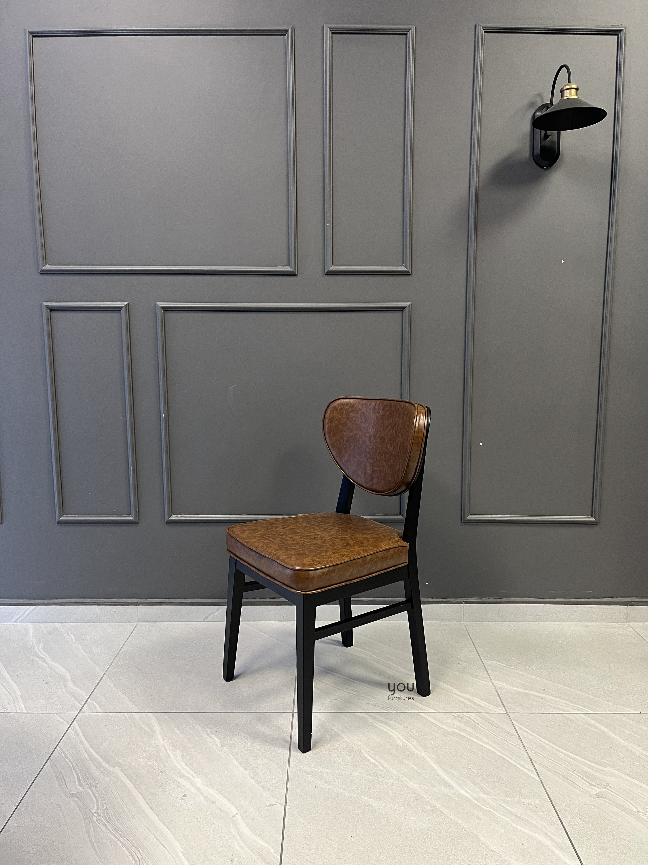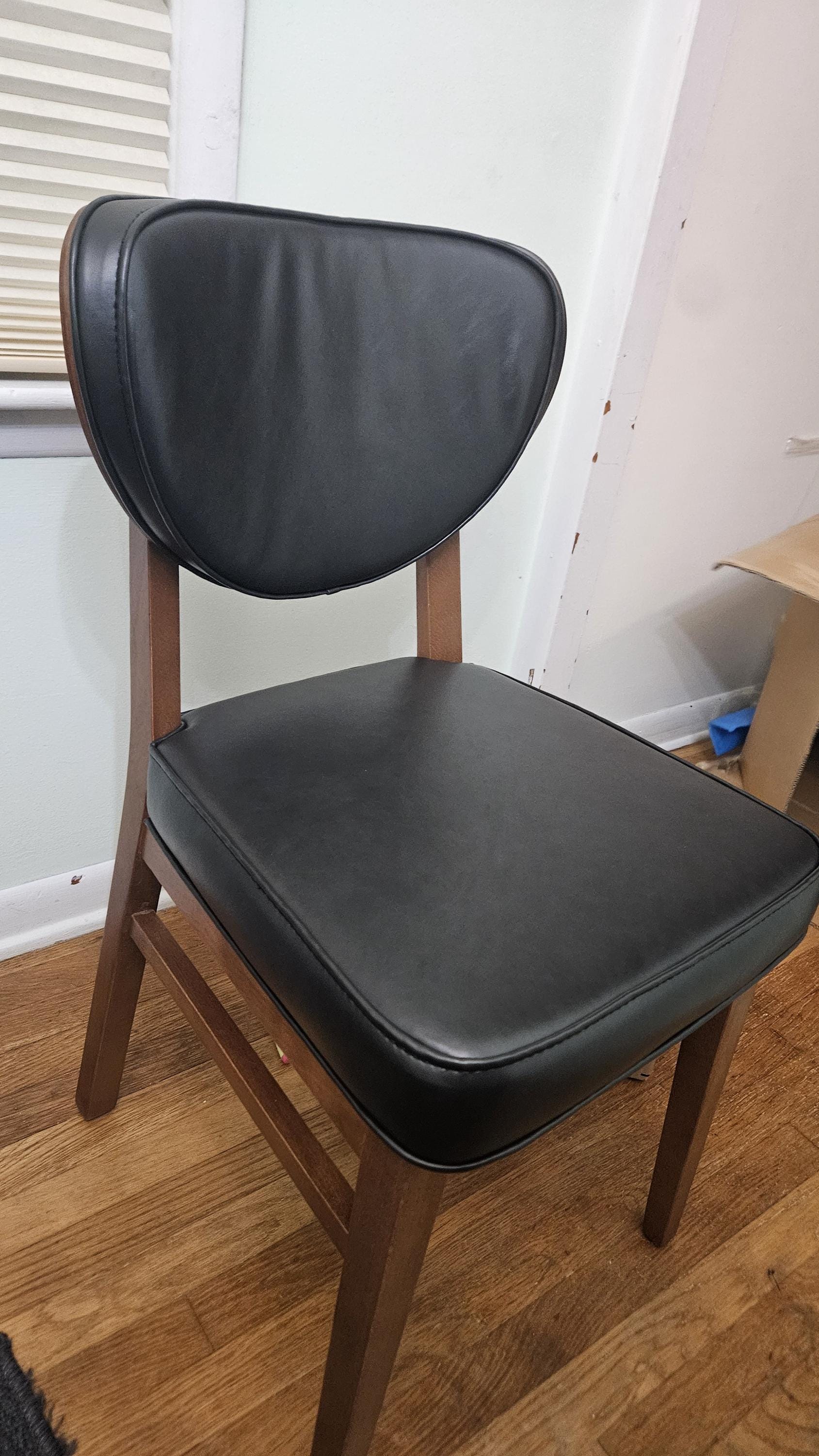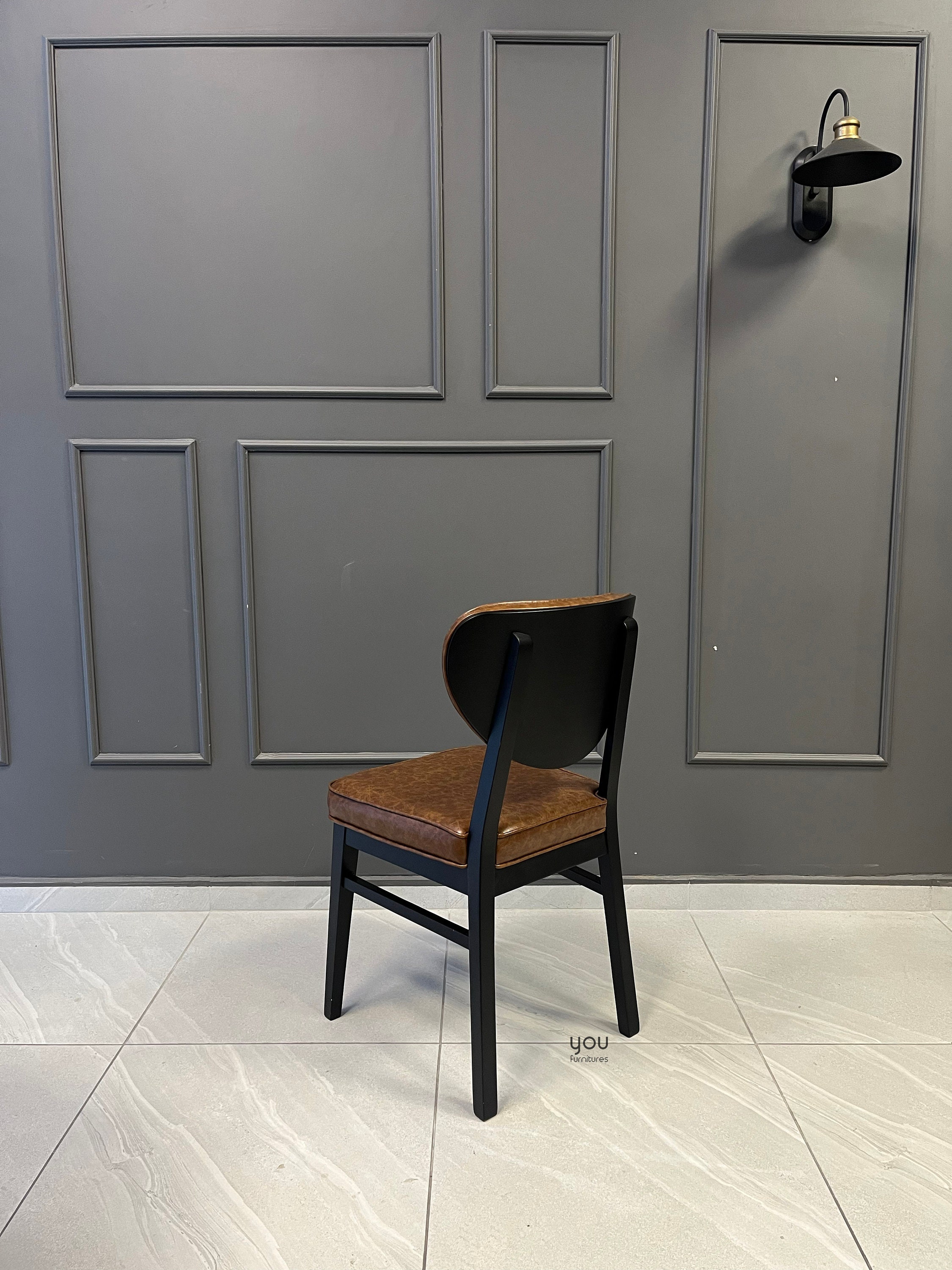 Upholstery material is vegan leather, it is possible to upgrade it to genuine leather.