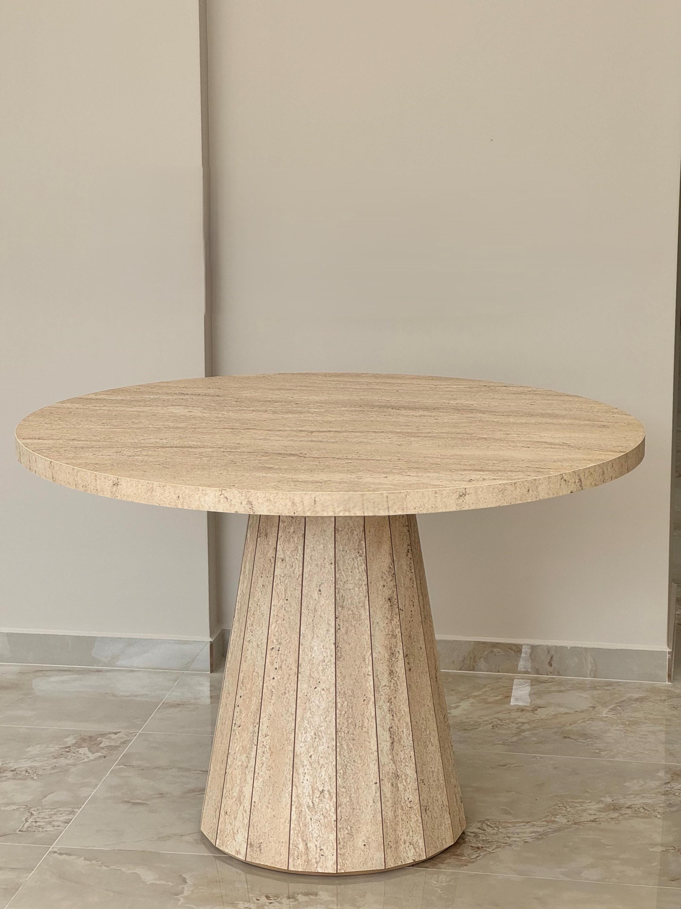 Pedestal Table - Travertine-Veneer Round Dining Table